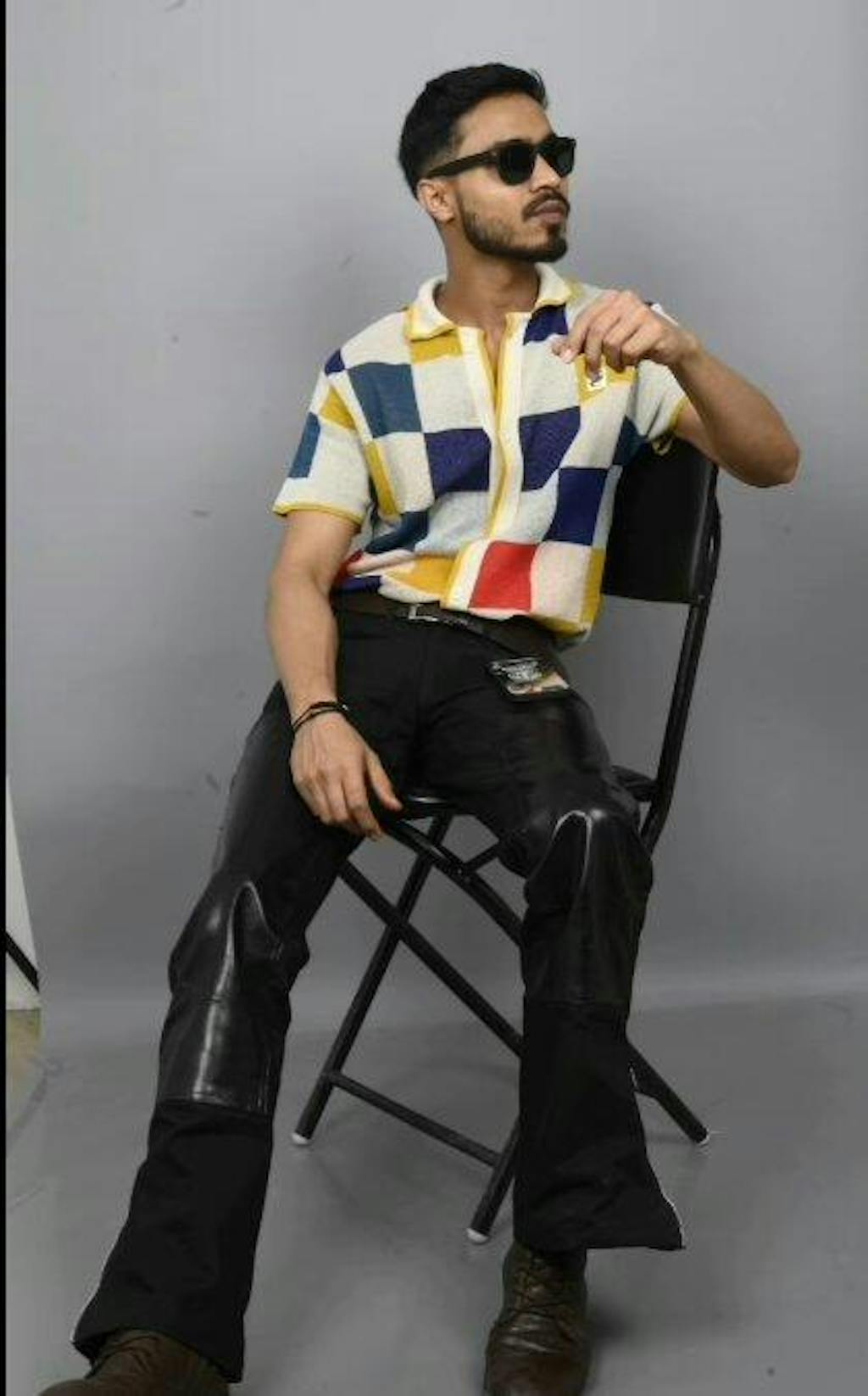 • Product Name: Ecru Colour Blocked Knitted Shirt