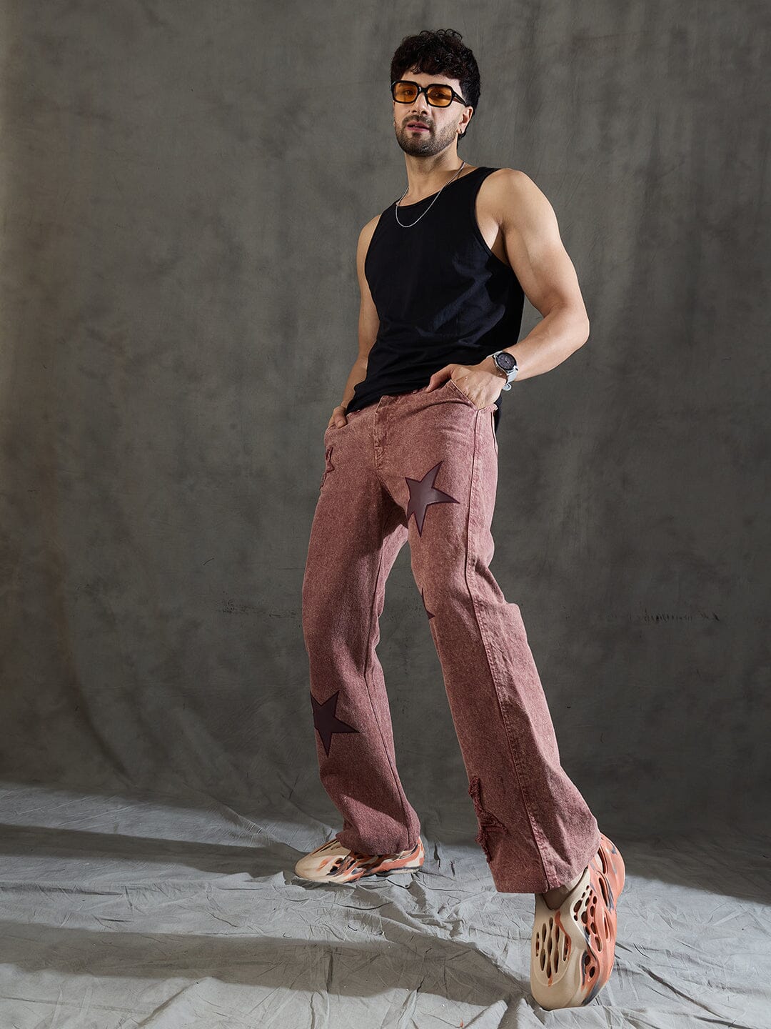 - Product Name: Copper Brown Star Embroidery Flared Denim