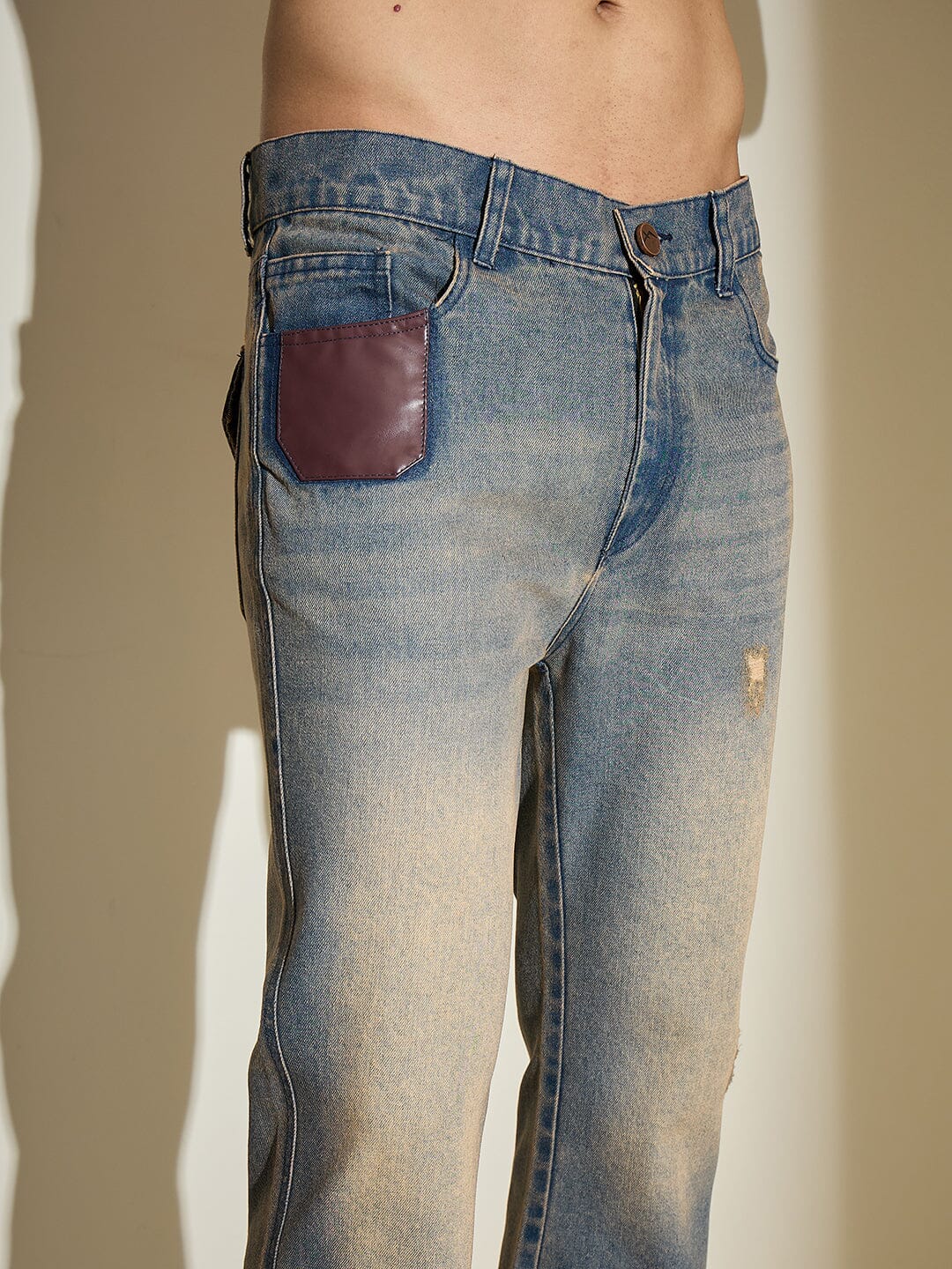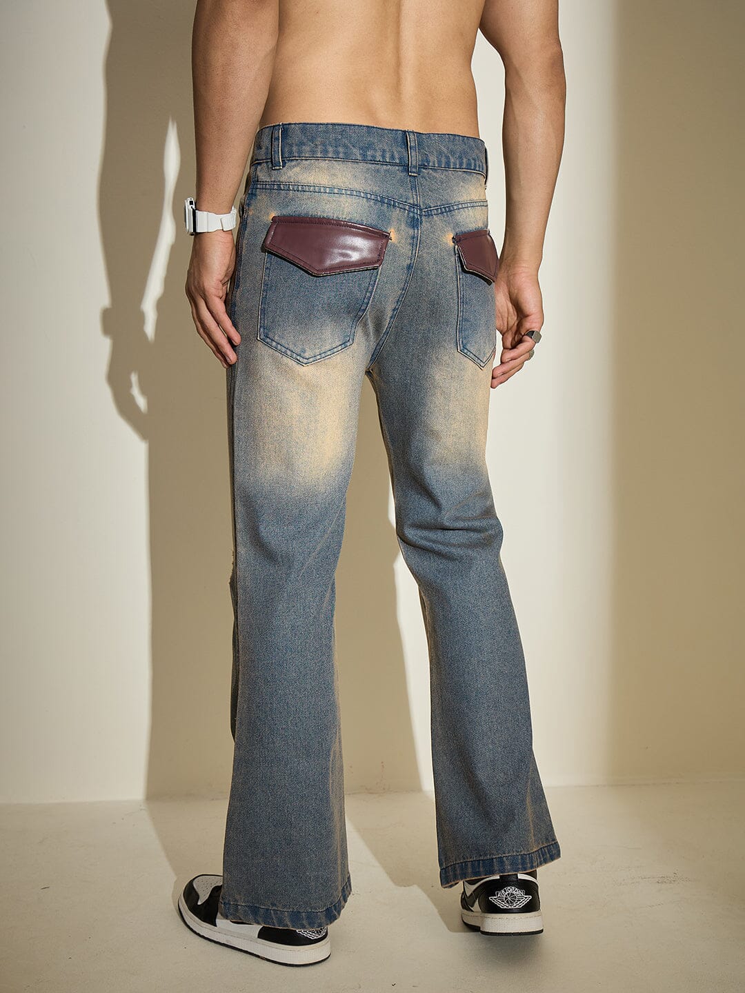 Introducing Indigo Super Flared Dusty Cow Boy Denim. Made with 100% cotton denim fabric, this pair of jeans offers a regular rise fit, complete with belt loops. The effortlessly stylish wide-legged design features faux leather patch work details for a vintage cow boy inspired look. Don't compromise on fashion or comfort, this denim has it all.