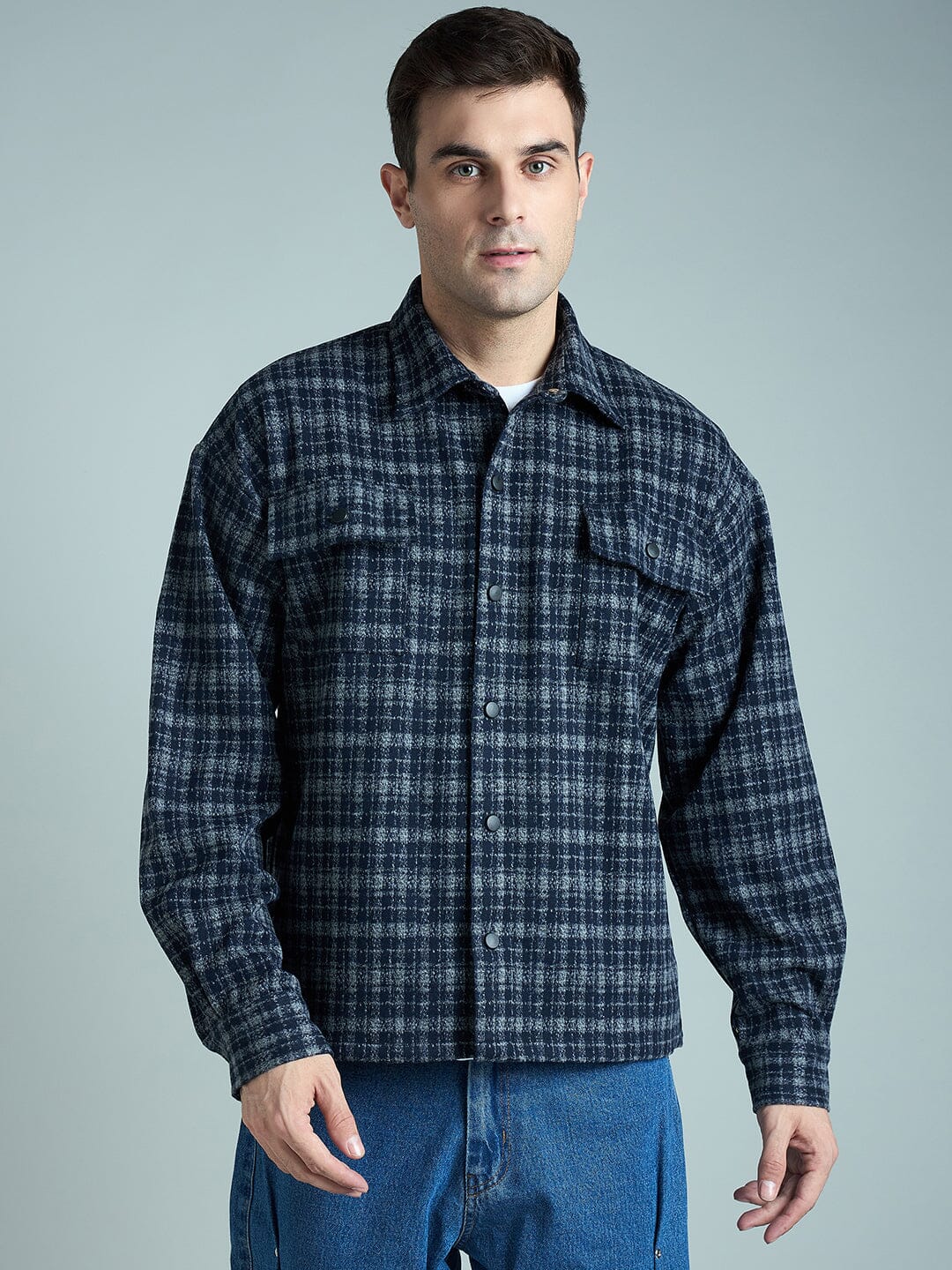- Product Name: Charcoal & Navy Checkered Tweed OverShirt