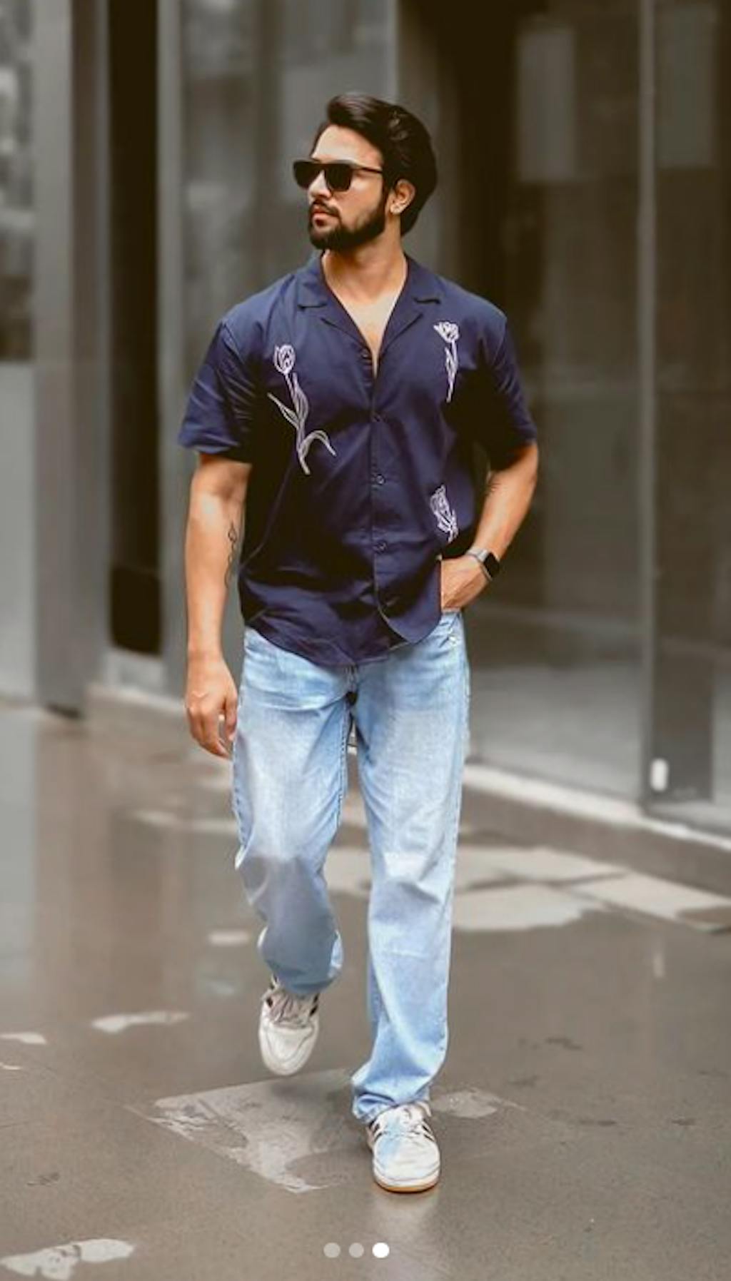 - Product Name: Navy Rose Embroidery Cuban Shirt