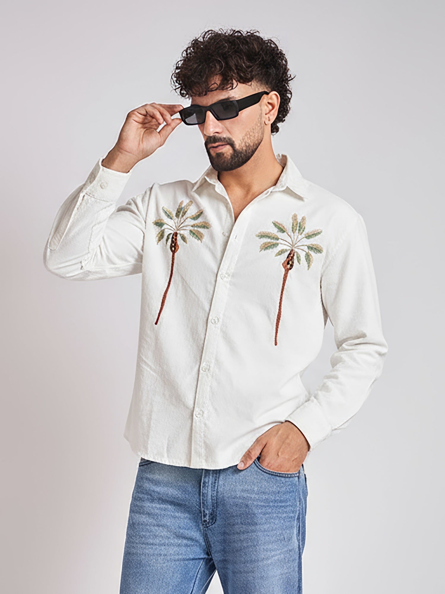 - Product Name: White Palm Embroidery Corduroy Shirt
