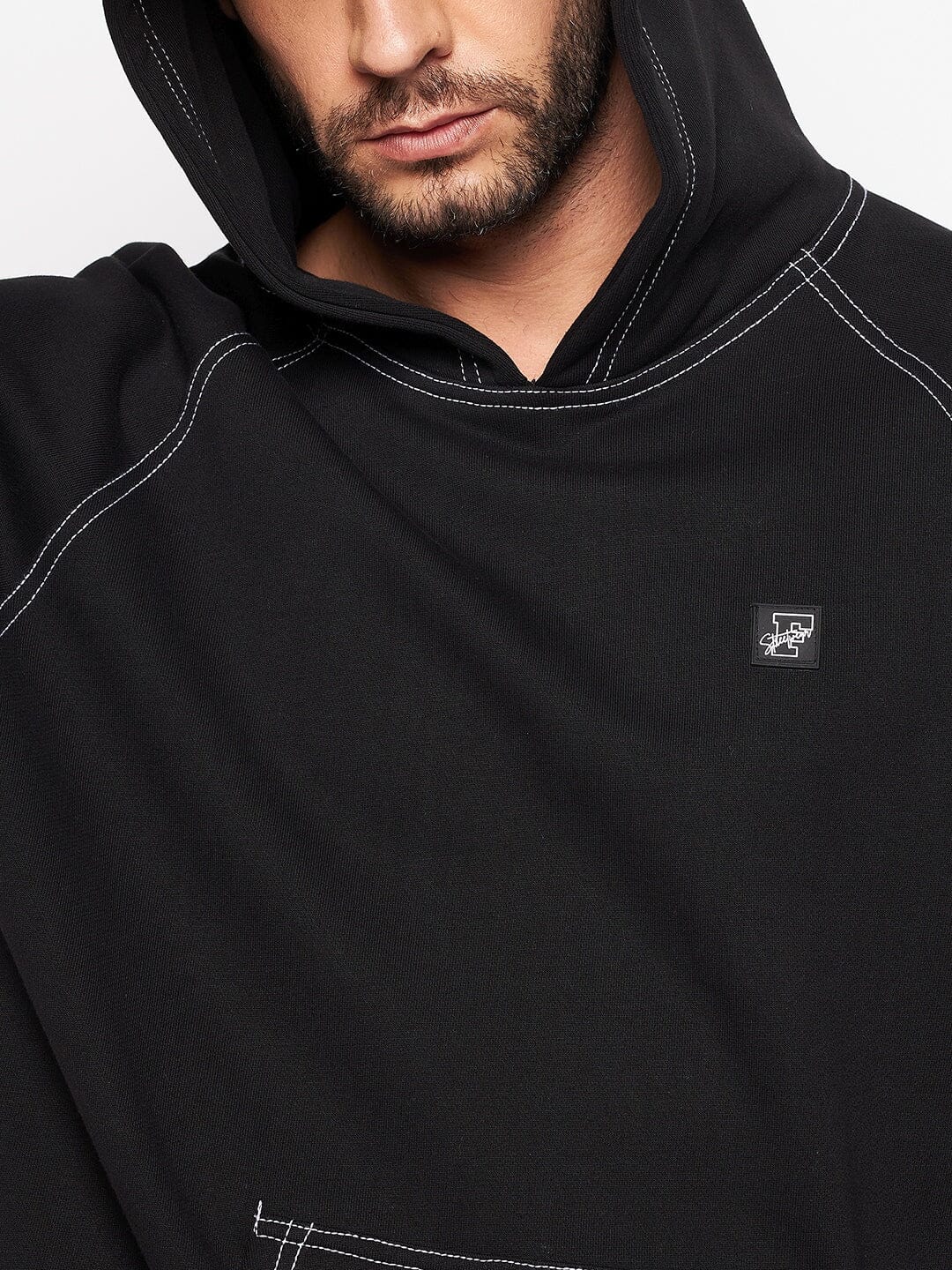 Black Oversized Contrast Stitch Hooded Sweatshirt